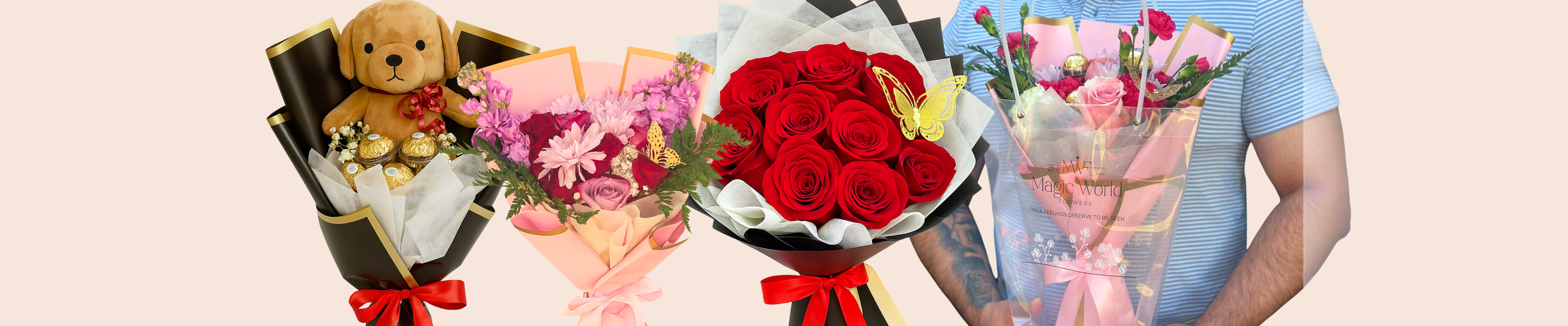 Every bouquet inside our vending machines is prepared by our team at Magic World Flowers using the same premium roses and materials we use in our boutique location. Machines are restocked frequently to ensure freshness and beauty at all times.